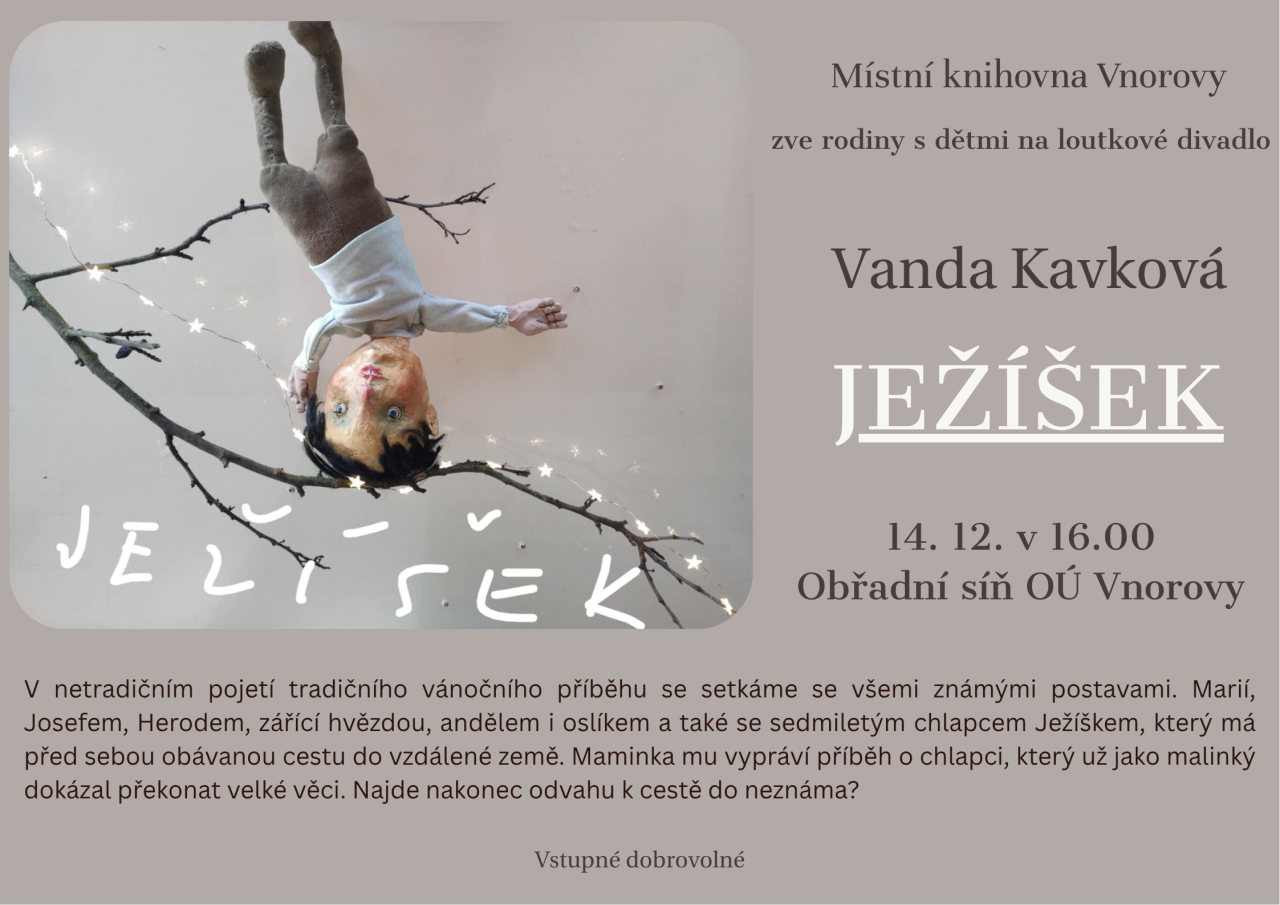 Srdečně zveme rodiny s dětmi na představení loutkového divadla Vandy Kavkové, které se uskuteční 14. 12. v 16.00 v obřadní síni obecního úřadu.