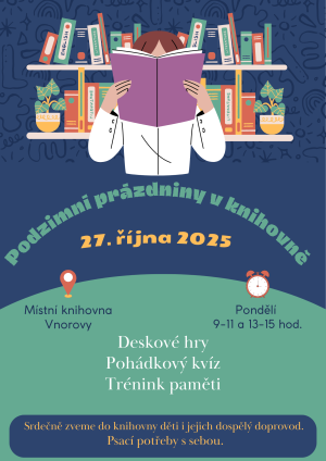 Od 6. 10. 2025 dochází ke změně návštěvních hodin knihovny.