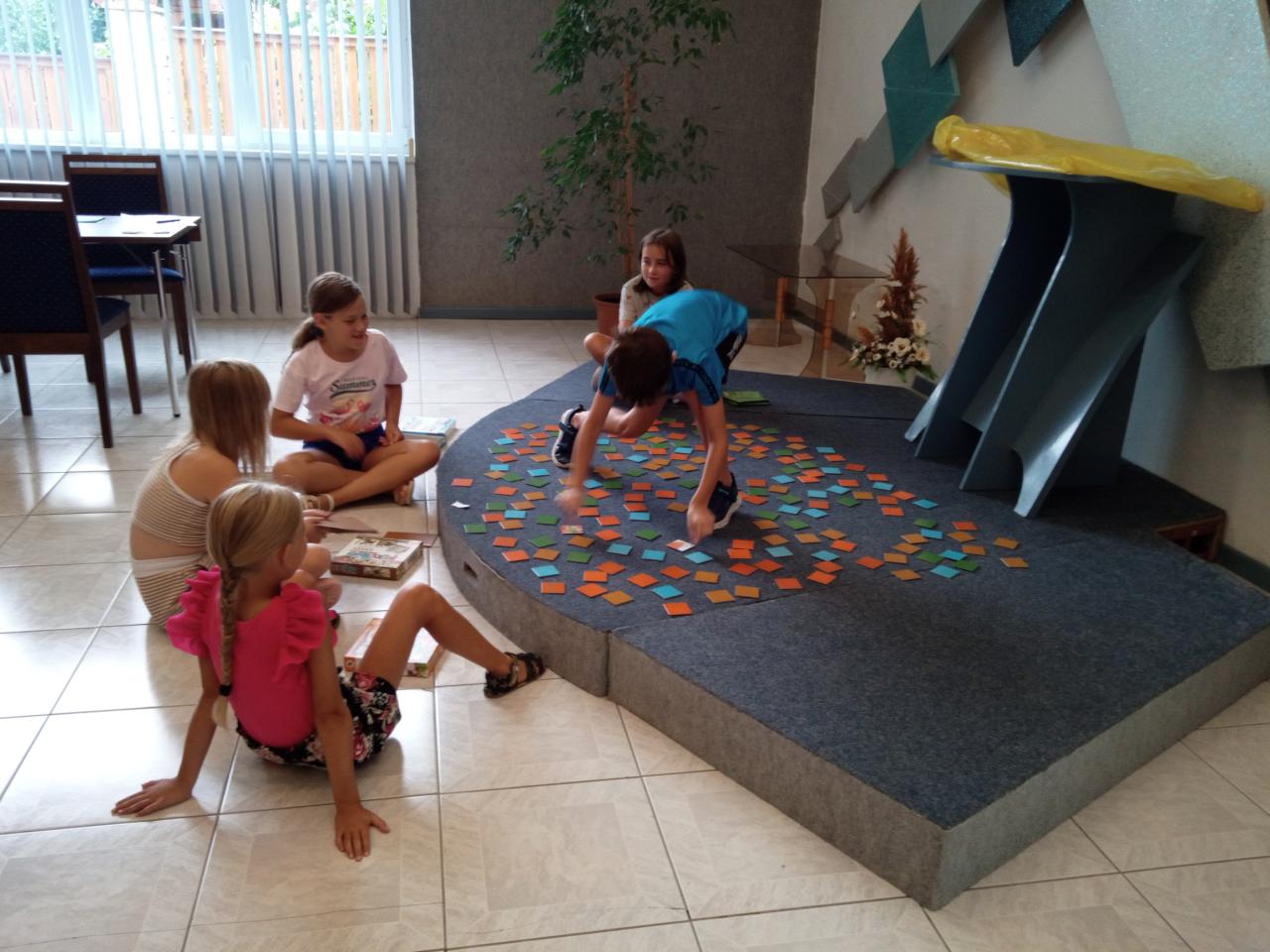 Dnes ráno v 8:00 hodin přišly děti s radostným úsměvem na rtech a byly napjaté, co je čeká za nové hry. Pak se ukázalo, že PEXETRIO někteří již znají a proto, aby to nebylo až tak jednoduché, jsme udělali větší výzvu. Všech 5 balíčků Pexetria (na téma: povolání, stromy, zvířata na statku, ovoce a zelenina, a savci) jsme dali dohromady a po-řá-dně zamíchali. Ten co našel nejvíce trojiček byl výherce. Ty, které to již nebavilo a bylo to pro ně dlouhé, si šly zahrát ještě jinou postřehovou hru "Svět v kostce", u které se též zabavily. A že se opravdu zabavily... . Všude jen smích a povídání o všem možném co bylo, je nebo ještě bude. Každopádně z toho, co bude je jedna věc téměř jistá. Poslední Letní hry v knihovně jsou naplánované na 28.8.2024 v tradičním čase a budeme si nejen hrát, ale i každému sčítat nasbírané body ze všech absolvovaných her nejen za výhry, ale i účast.
