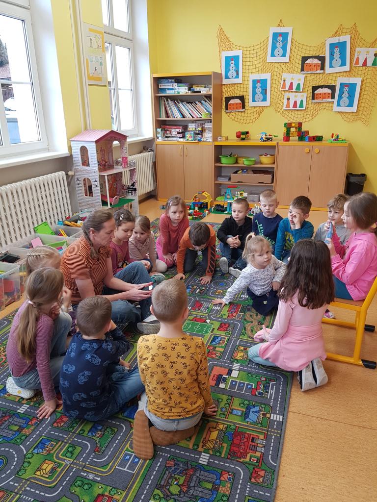 Dnešní brzké odpoledne jsme si v družině I. oddělení zpříjemnili čtením pohádek. Nejprve o Čarodějce Winnii (Valerie Thomasová a Korky Paul), která měla doma milovaného černého kocoura Wilbura. To by ani asi tak nebylo nic zvláštního, kdyby sama Winnie nebydlela v úplně černém domě a tím pádem zažívala mnohá nepříjemné dobrodružství s černým kocourem a jeho neustálého hledání. Proto jej začarovala do různých pro ní viditelných barev, ale stále to nebylo ono. Až pak dostala super nápad: vrátit kouzly kocourovi původní černou barvu a svůj dům zahalit do různých veselých barev. Po skončení čtení jsme si pak povídali jednak o karnevalech které děti navštívily i v jakých kostýmech a zároveň jsme plynule přešli k barvám. Nejen jaká je jejich oblíbená, ale i jak která barva vzniká. Ti kteří jako první odpověděly správně na otázku "Jaká barva vznikne, když smícháme X a Y?", vyhrály cenu. Ale bylo to těžké. Ne že by to ostatní děti nevěděli, ale pak už rozhodovala jen rychlost správné odpovědi. Na závěr jsme si ještě přečetli jednu pohádku O třech prasátkách ( Adolf Dudek z knihy 7 zlatých pohádek) z které plynulo ponaučení, že být líný se nevyplácí.