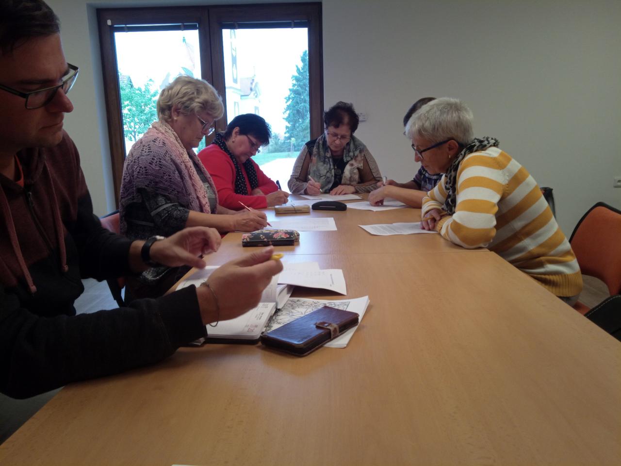 Trénování paměti s vždy pozitivně naladěným panem Glozem se uskutečnilo po dlouhé době na DPS. Letní měsíce "volna" každý využil po svém a tak někdo své mozkové neurony měl dobře "namazané". Ač byly úkoly na první pohled jednoduché, daly zabrat. Ale nebyly zas tak těžké, že by se nedaly zvládnout. Vždy, během zpracování úkolu u tápajících, lektor ochotně poradí a na konci si zadání všichni společně zkontrolují a občas se i od srdce zasmějí tomu, co tam napsali/vymysleli. Příští lekce bude až v prosinci, protože pan Gloz v listopadu již něco má. Ale ač to všechno bude předem avizováno, hlídejte si prosím termín. Ať již na webu obce či knihovny, ale i případně hlášení v rozhlase.